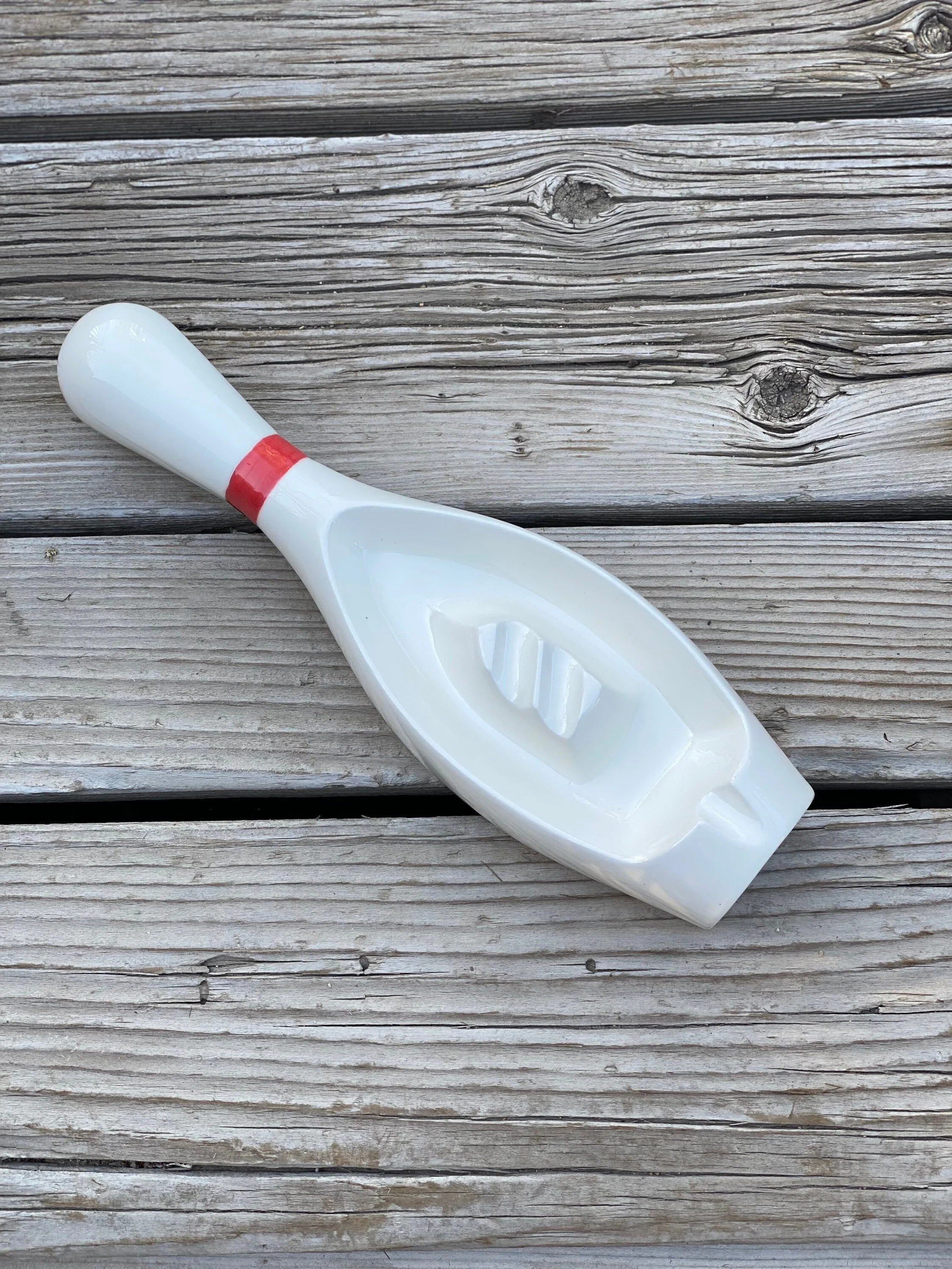 The bowling pin is 11” long, 3” wide, and 1.5” tall.